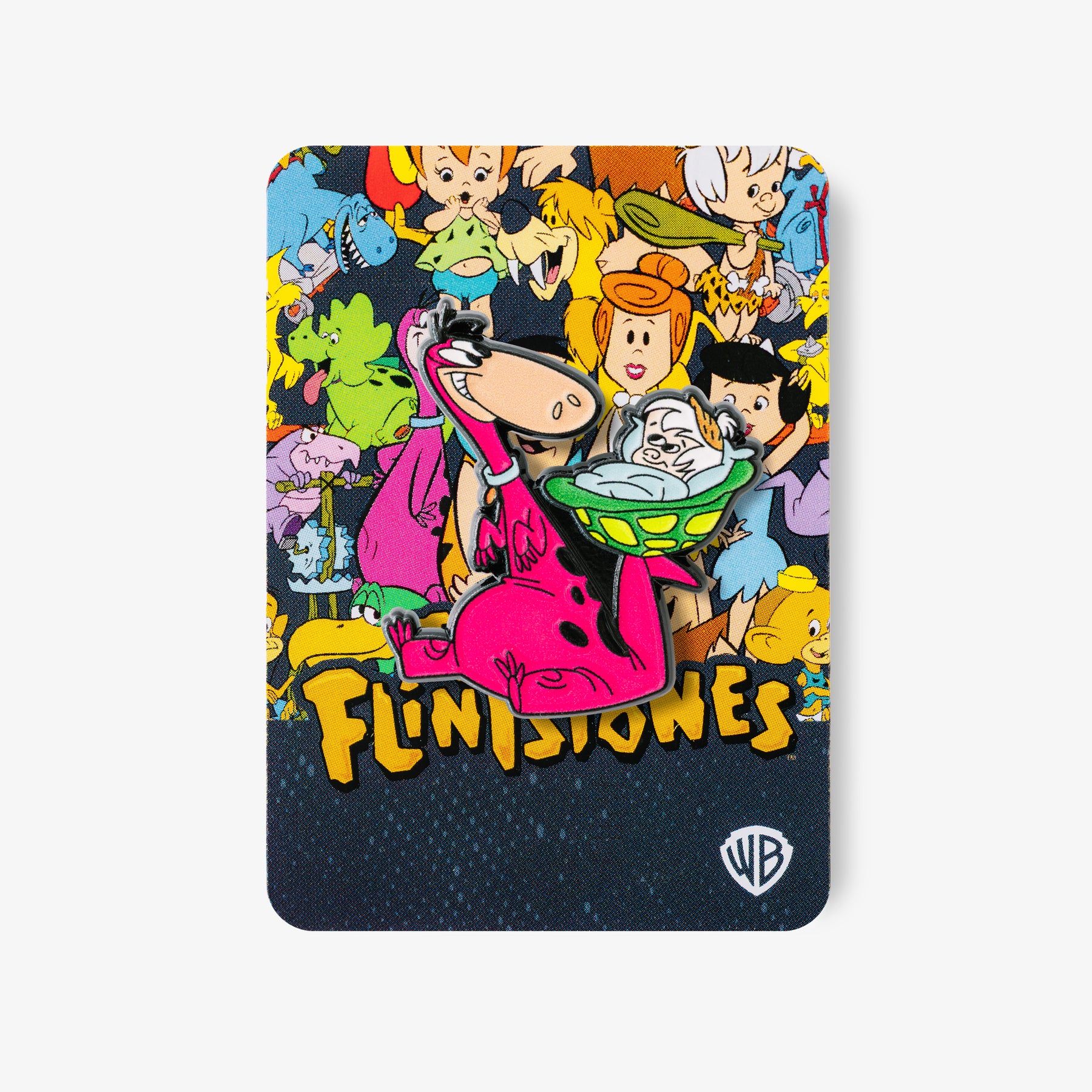 Designed in the UK, this collectible Dino and Bamm-Bamm pin badge is made from enamel-filled, stamped metal with a butterfly clasp and stands 30mm high.